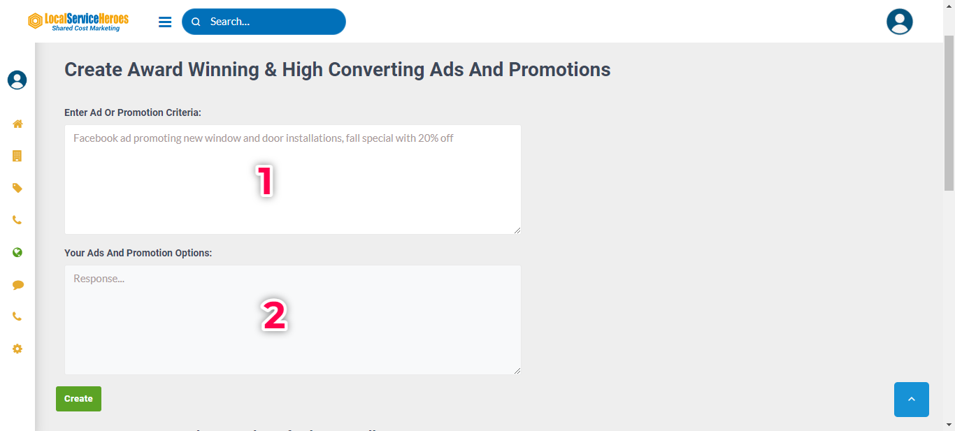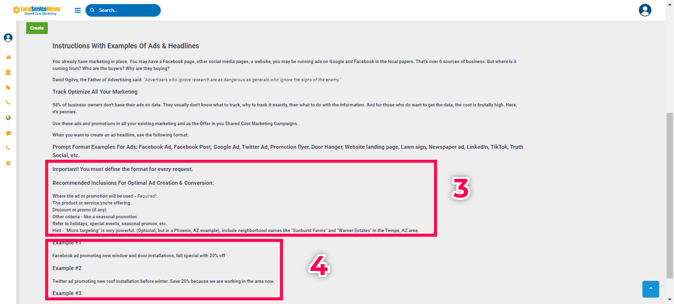 - Refer to the examples for request style, content, and how to ask the AI for your ad, in this tool.